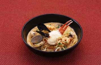 | 게, 조개, 새우 등의 해산물을 듬뿍 사용한 스프 스파게티. td>