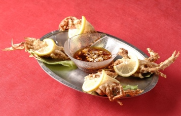 | 소프트 쉘 크랩 (탈피 어린애 게)를 튀김하고 油淋 소스와 함께 먹으며 있습니다. td>